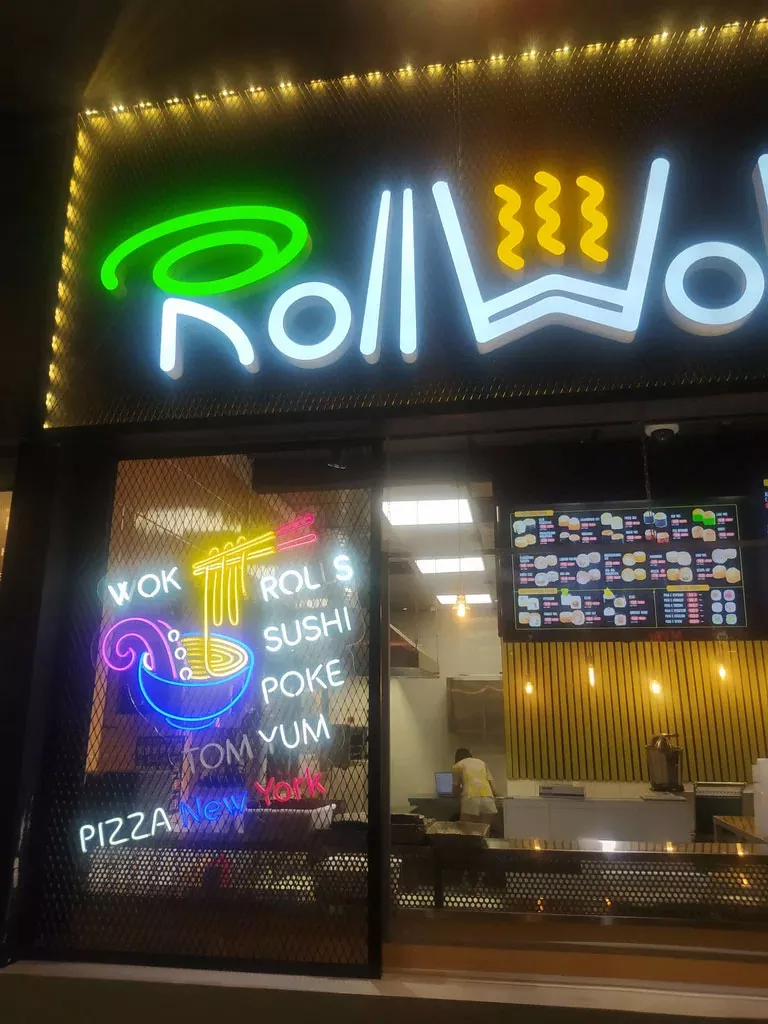 Разработка светящейся интерьерной вывески суши-бара «Roll Wok Club» в Гае